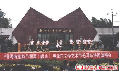 毛澤東紀(jì)念園位于毛澤東故居西側(cè)約500米的層山疊嶺之上,紀(jì)念園最初定名為“毛澤東之路景園”。景園的構(gòu)思顯然受到了全國(guó)許多大城市“世界之窗”微縮景觀的啟示,整座景園只用了一年的時(shí)間,在一九九五 年底,占地約二十萬(wàn)平方米,大小建筑近百處,集紀(jì)念、教育、游覽等多種功能于一體的景園便展現(xiàn)于世人面前。